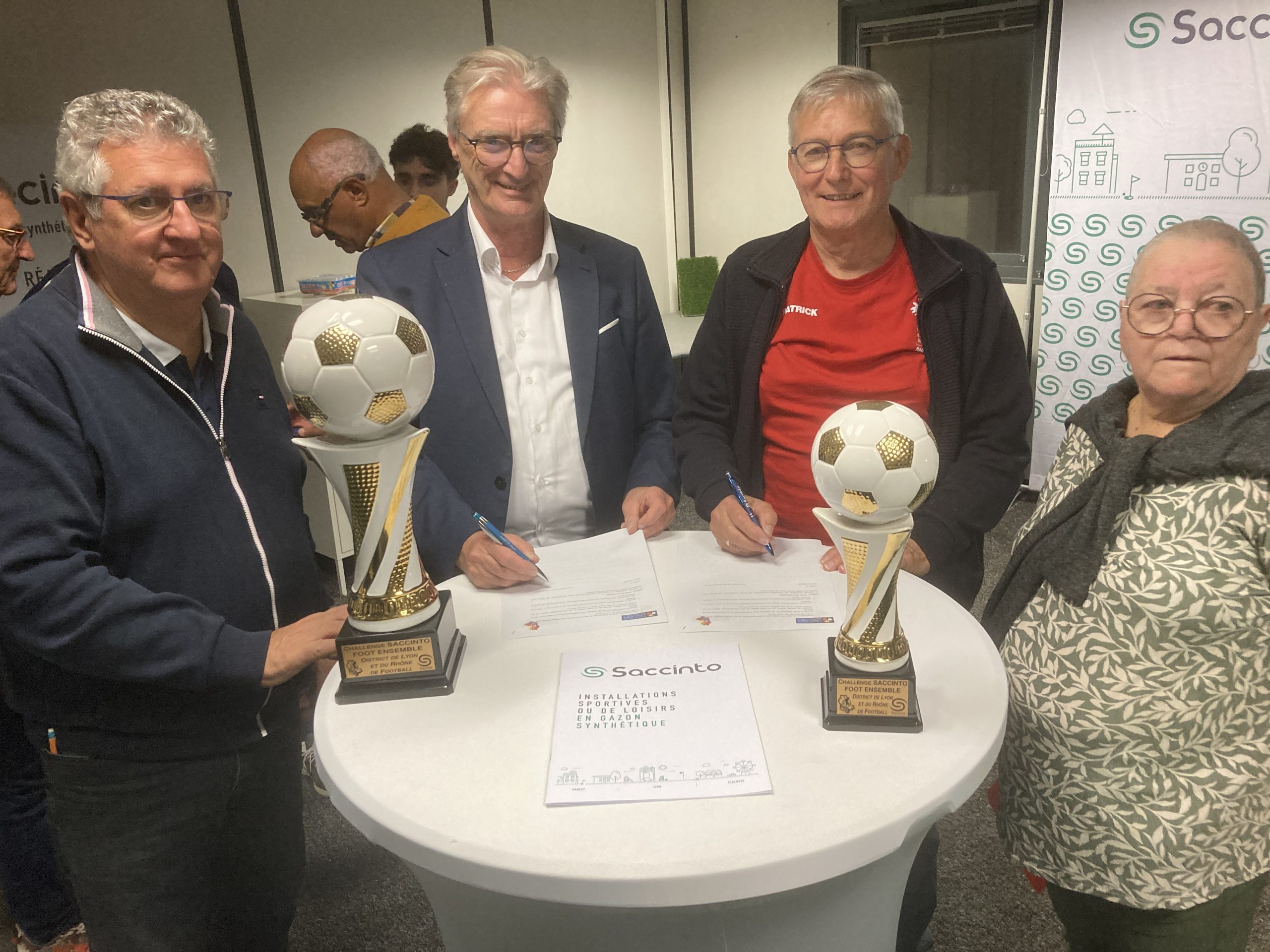 Sébastien Saccinto, le dirigeant de l’entreprise éponyme, accompagné d’une partie de son équipe, a accueilli l’ensemble des clubs mercredi soir dernier pour officialiser le lancement de cette nouvelle épreuve du District de Lyon et du Rhône. Aussi pour lui donner la lumière qu’elle mérite, en présence d’Arsène Meyer (président District) et de Gilles Pomorski, le président du Comité Départemental de Sport Adapté (CDSA), et de nombreuses personnalités du district et du CDSA (Bernard Courrier, Evelyne Monteil, Salima Saket, Hocine Kerouani, Chloé Garcia…) et des membres de l’équipe de la commission Foot Ensemble (Salima Saket, Dervil Argyre et Alain Monteil).