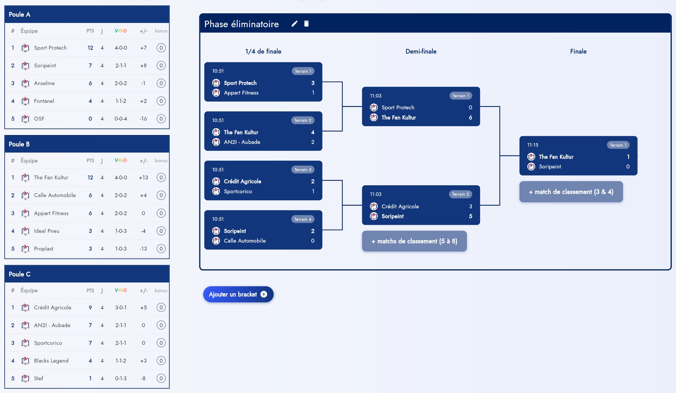 Dans l’autre partie du tableau final, le Soripeint de Mohamed Cheriti faisait le nécessaire dans le même temps pour se hisser en finale en sortant successivement Calle Automobile en quart, puis le Crédit Agricole en demie.